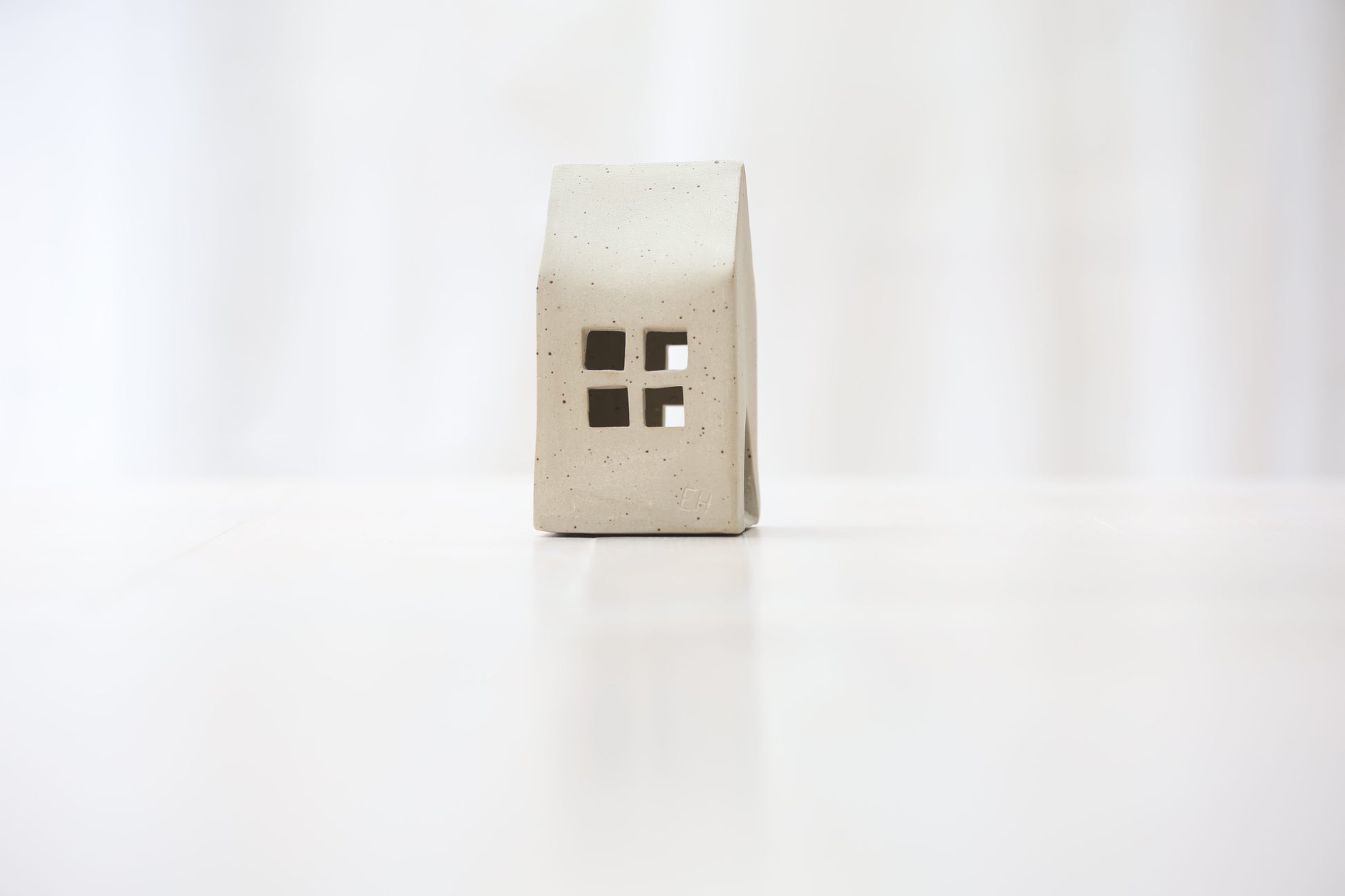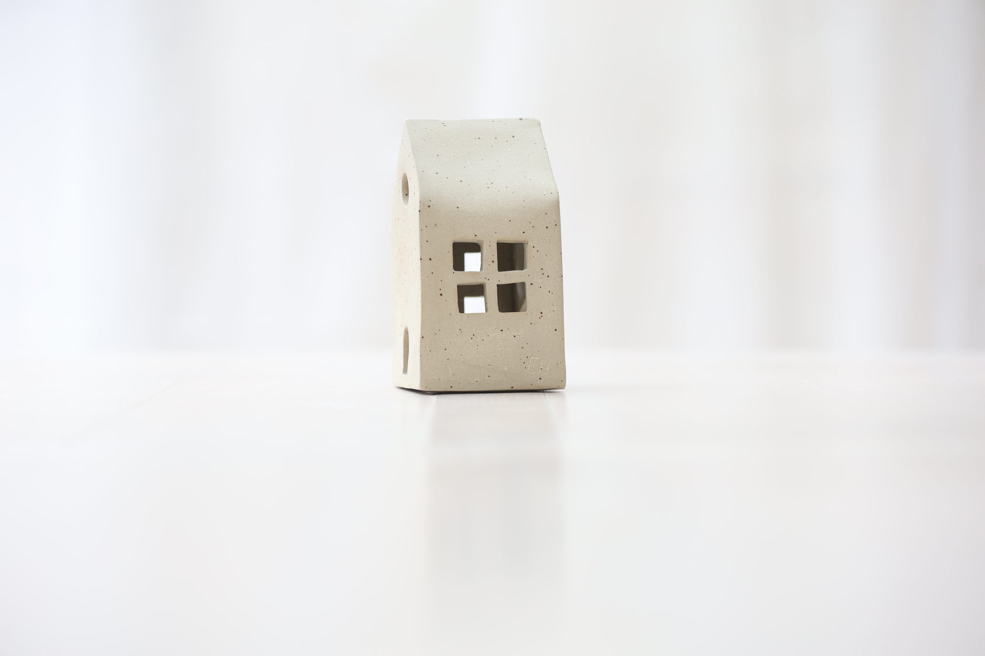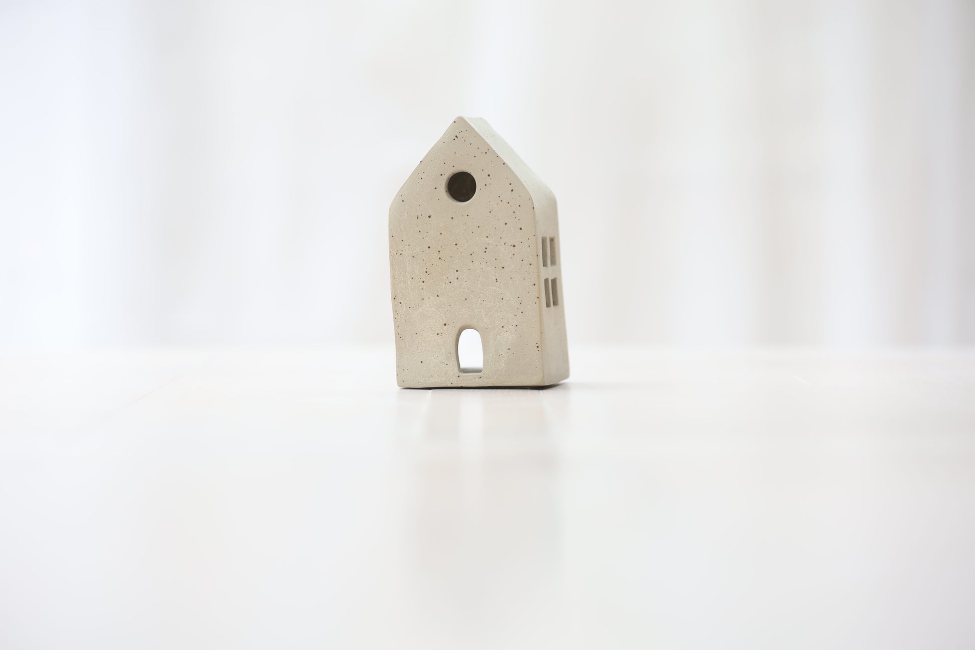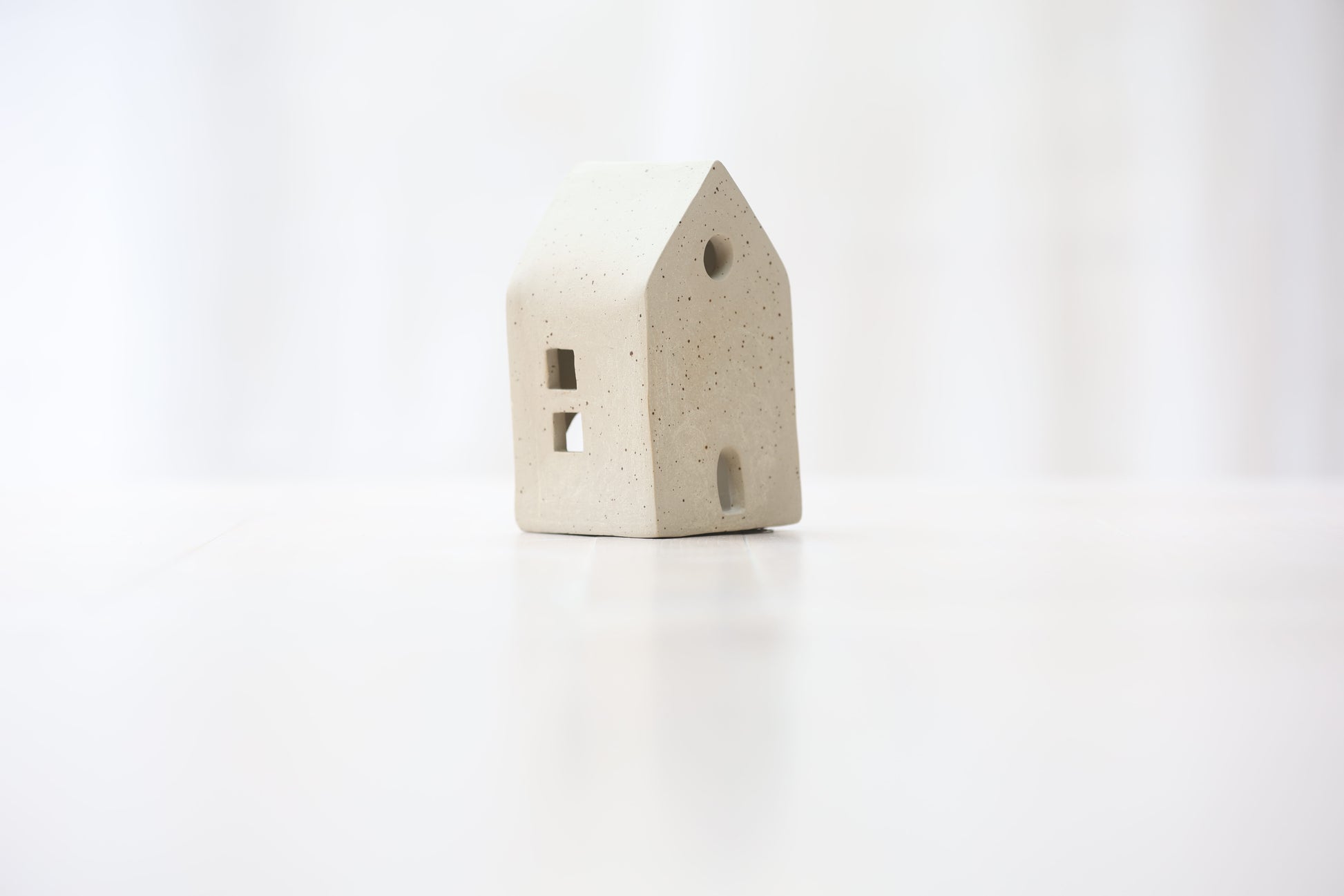 Maison photophore en grès blanc pyrité