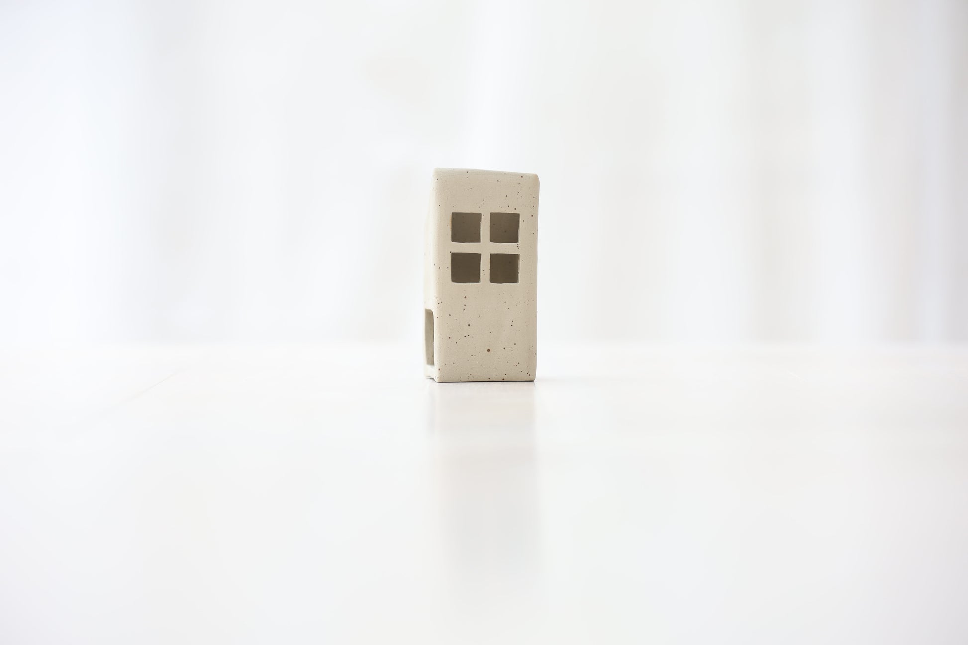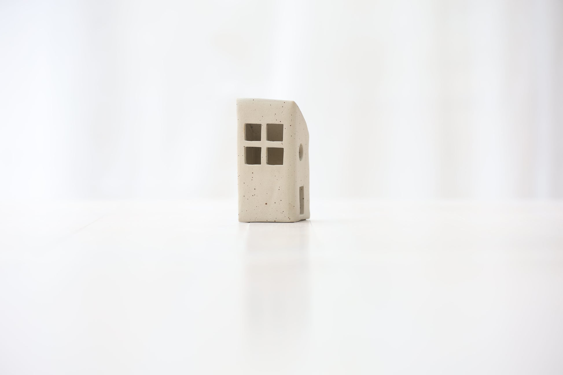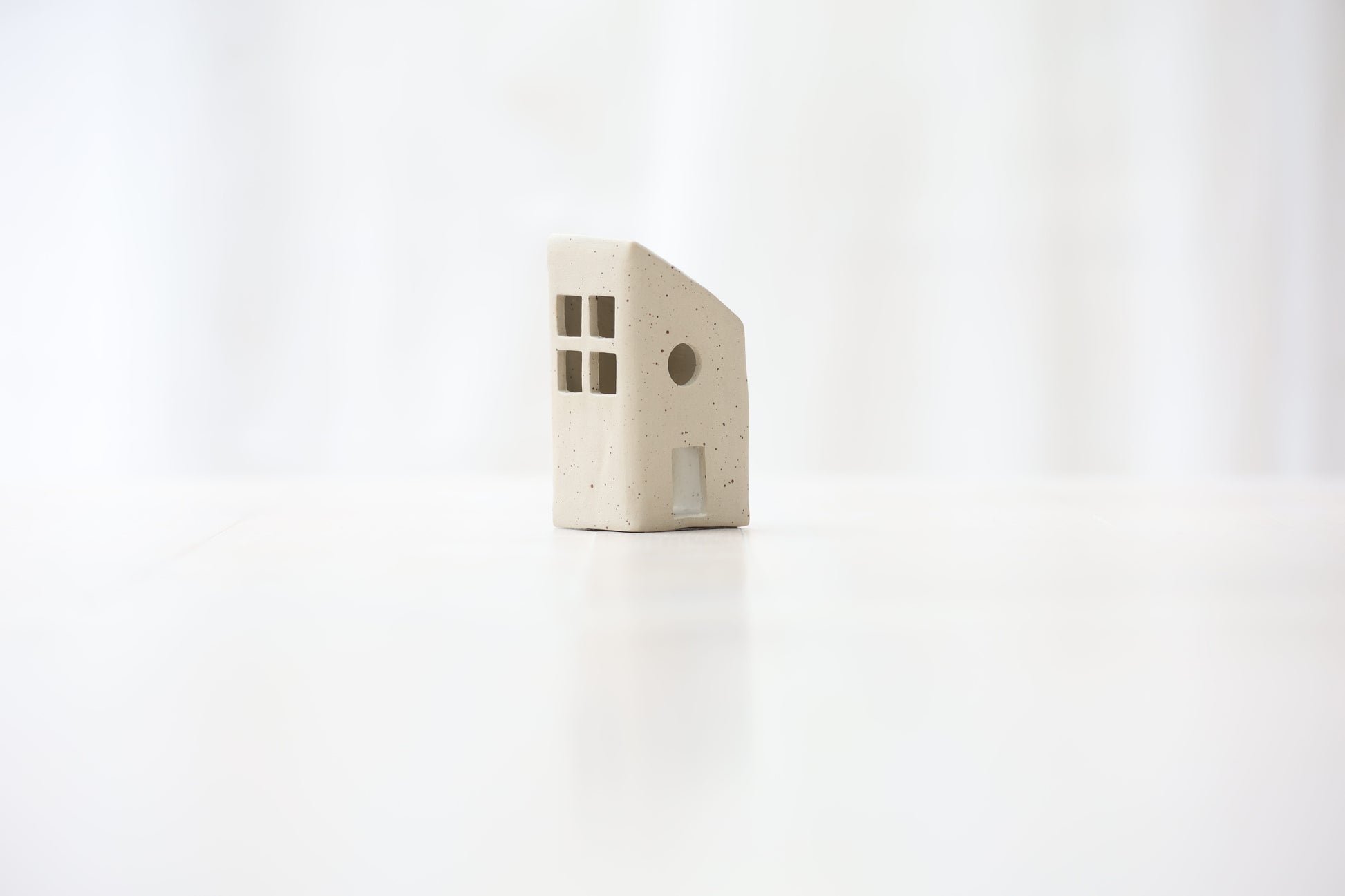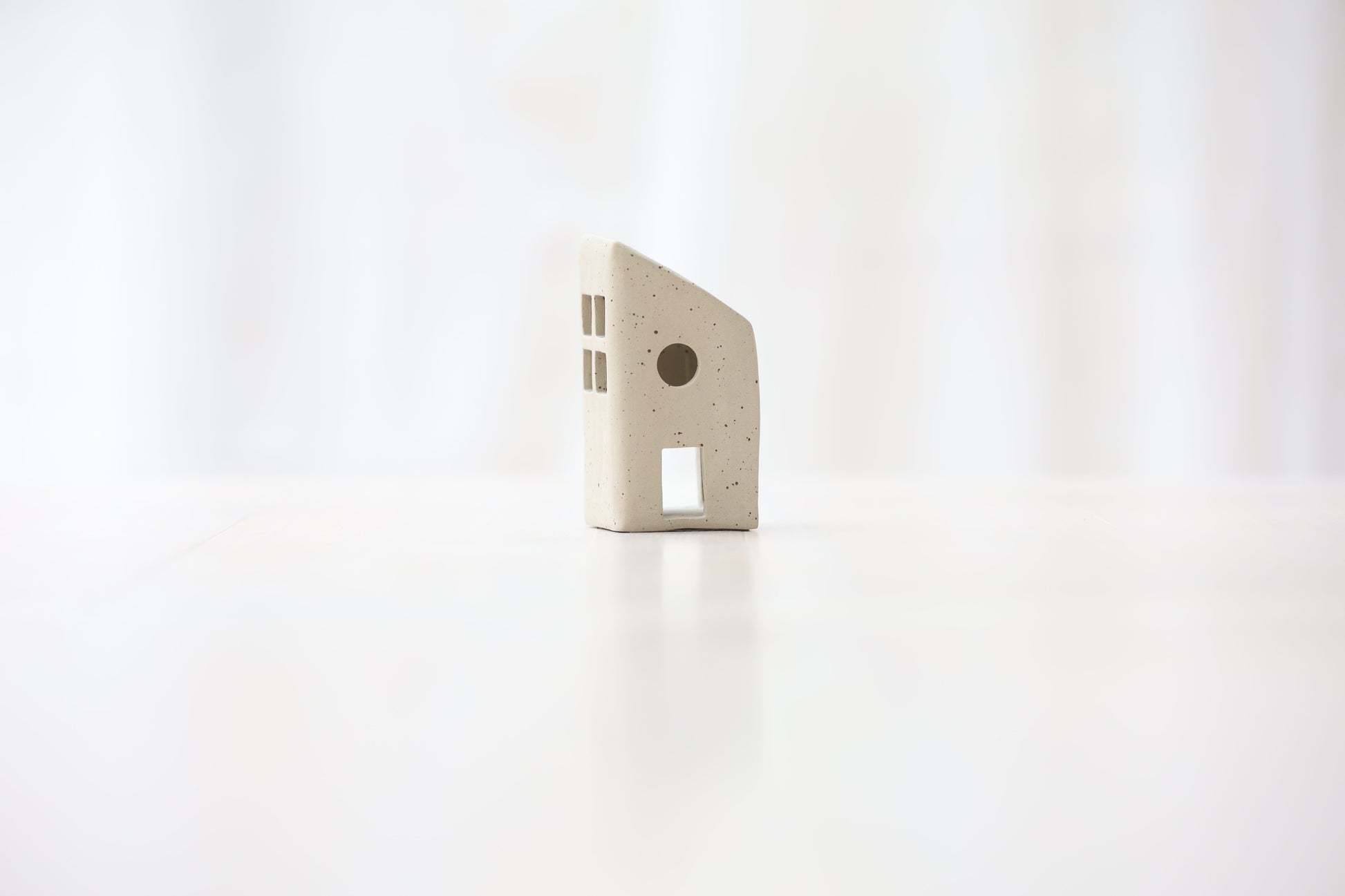 Maison photophore en grès blanc pyrité