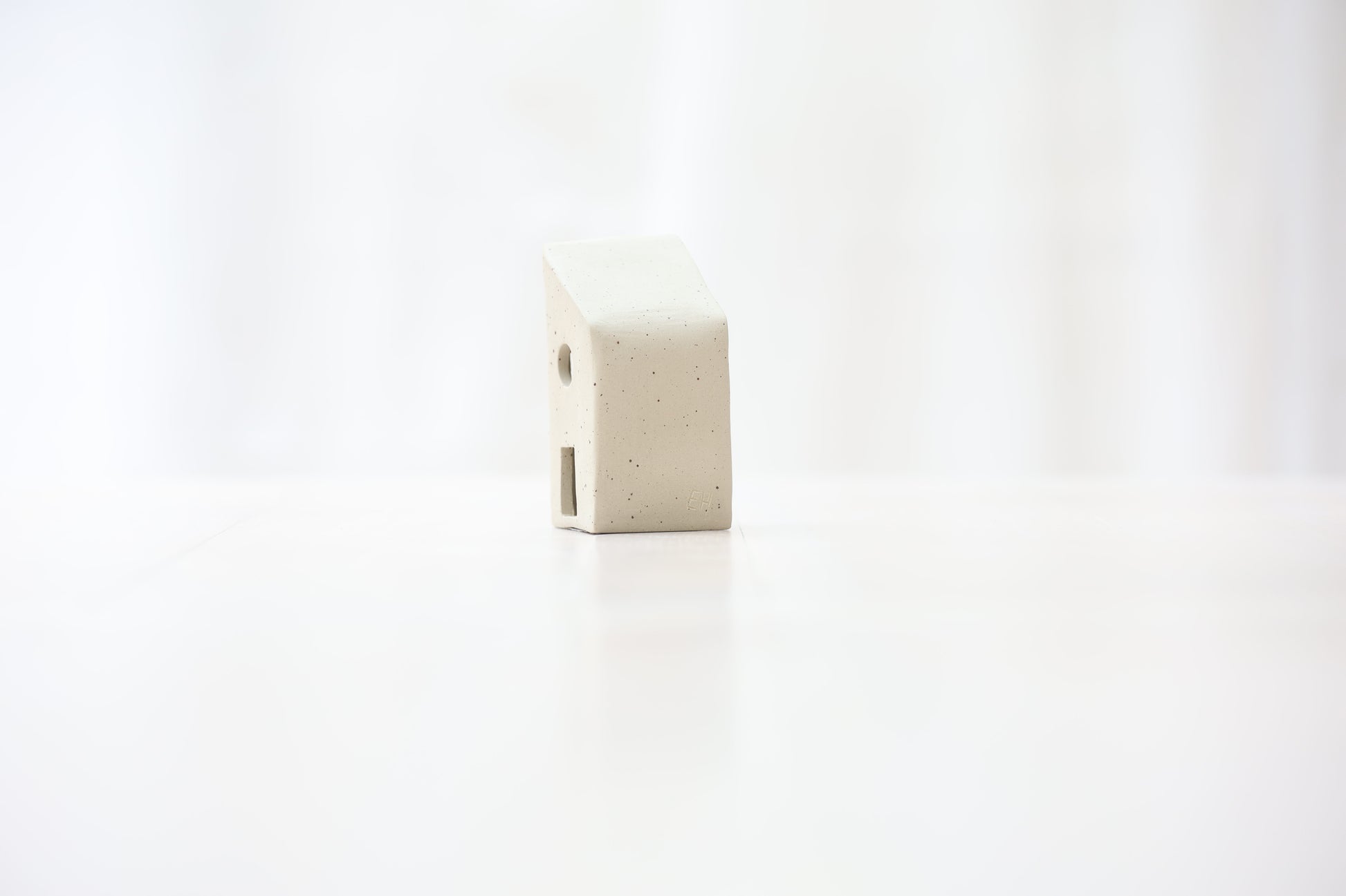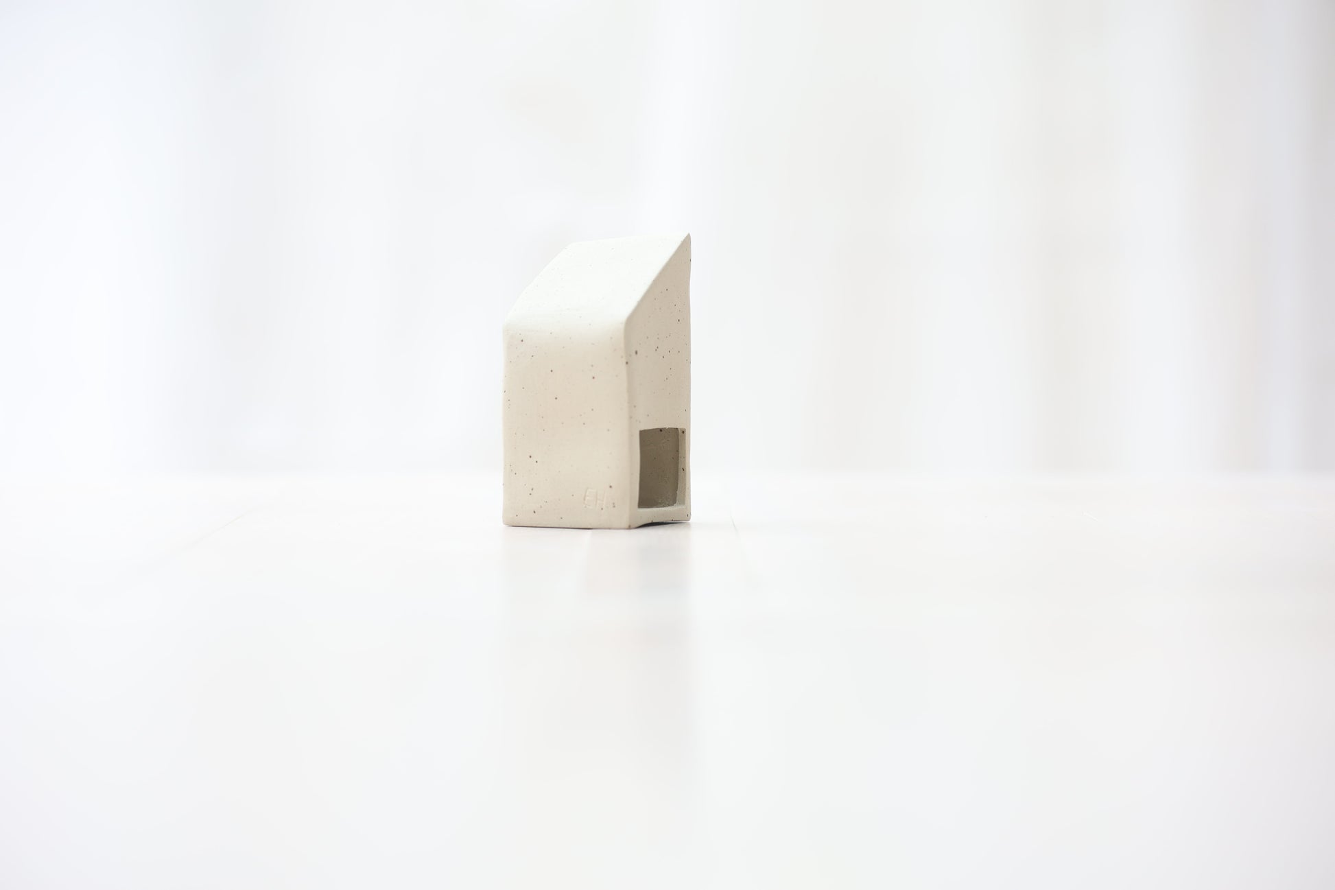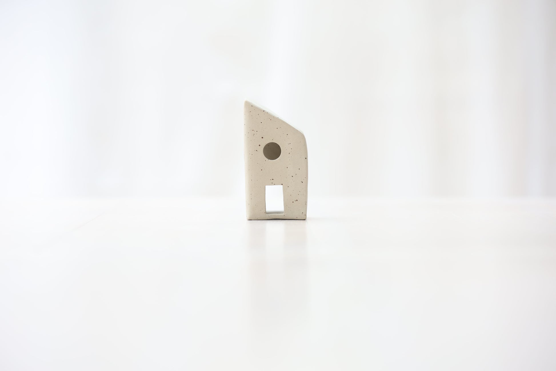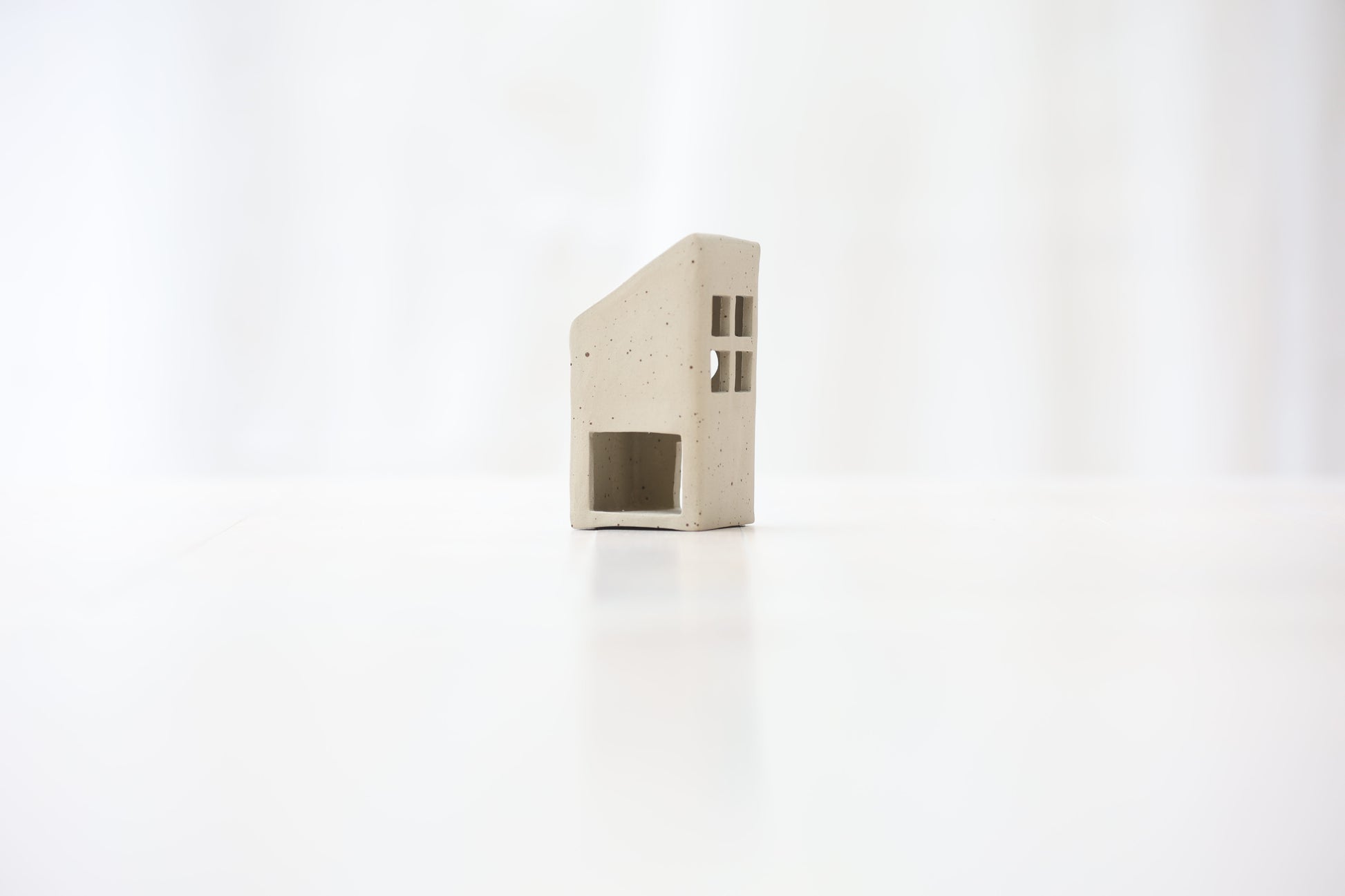 Maison photophore en grès blanc pyrité